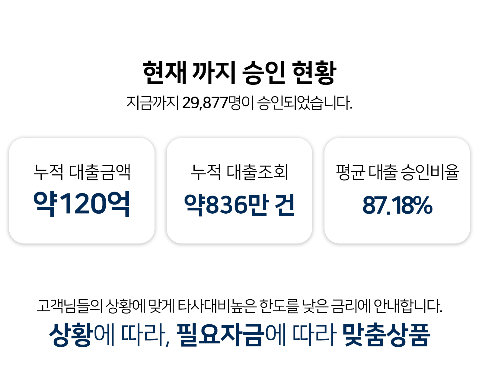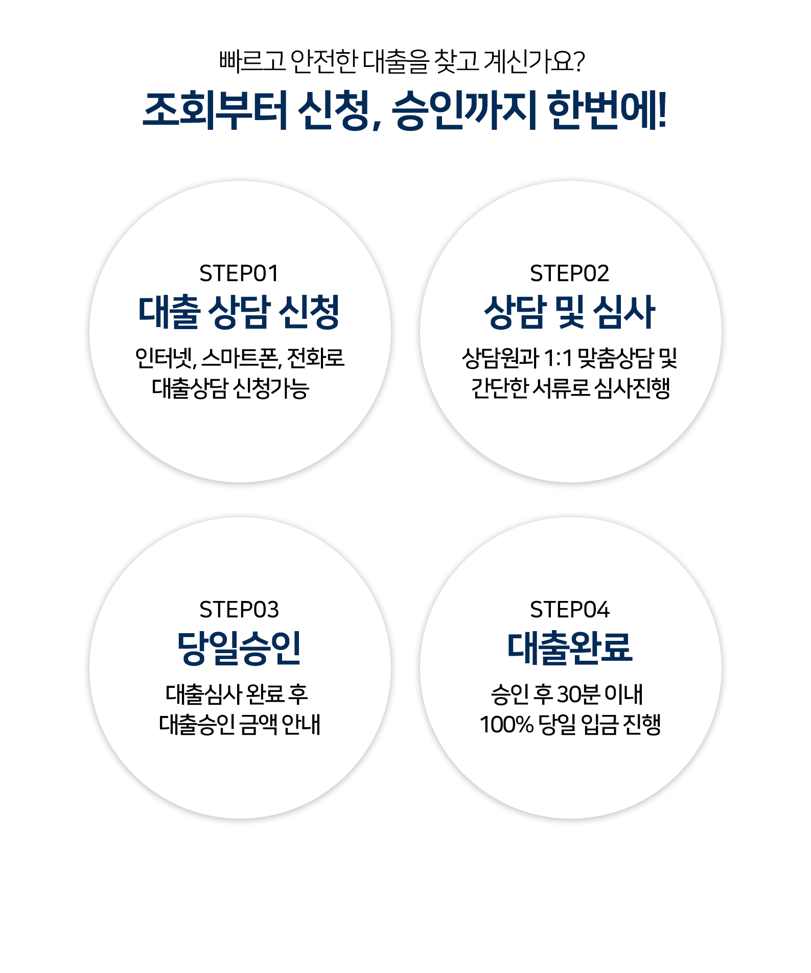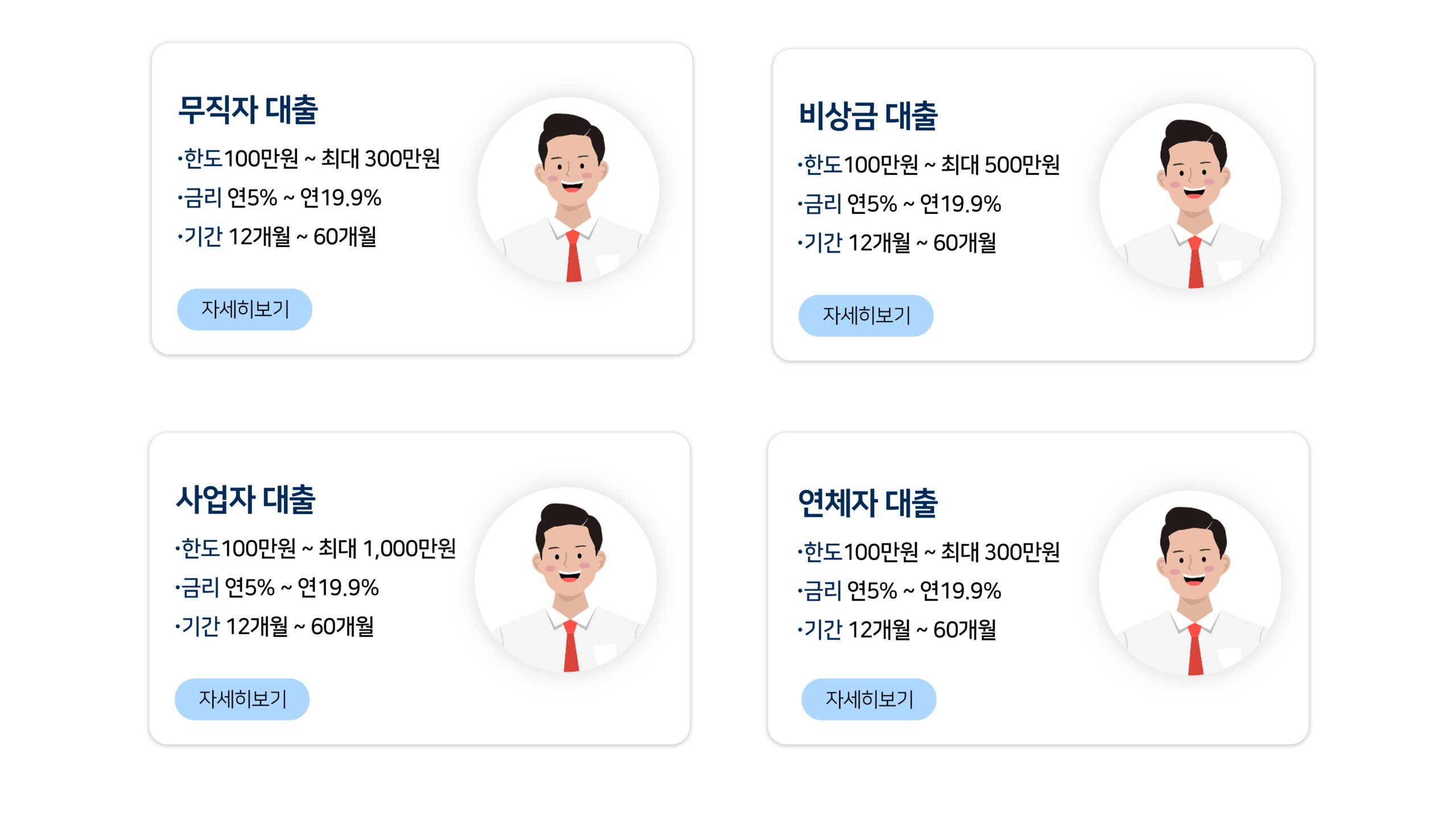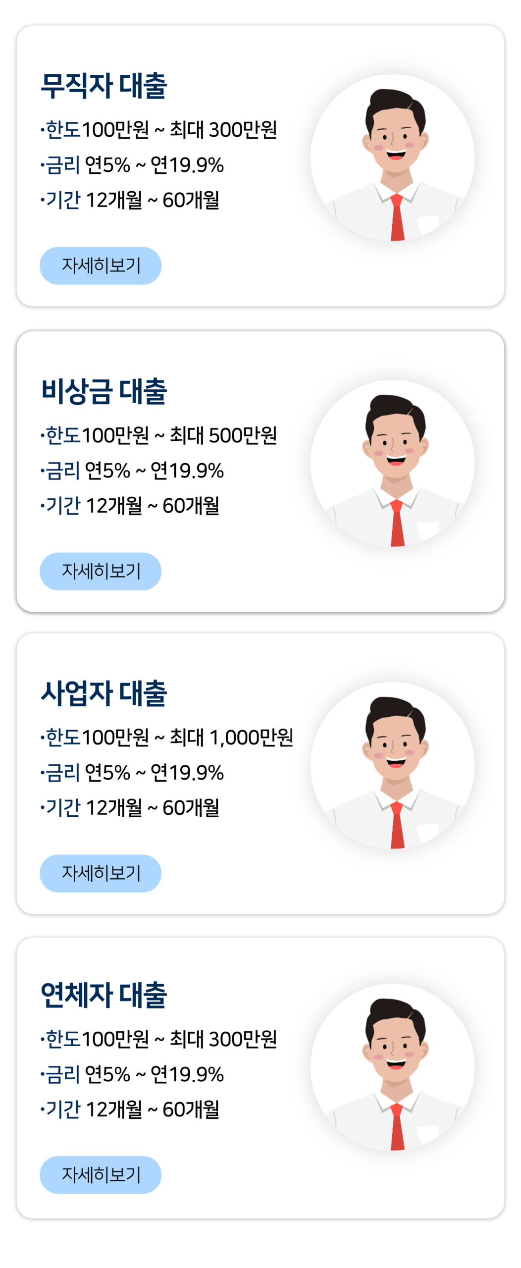 ※ 본 상품들은 연 5%~20% 이내의 APR(연환산이율) 기준으로 제공되며, 최소 3개월~최대 60개월까지 상환이 가능합니다.